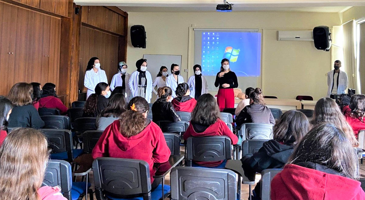 Eastern Mediterranean University (EMU) Faculty of Health Sciences, Nursing Department 3rd year students provided training on genital hygiene to 7th and 8th grade female students at Canbulat Özgürlük Secondary School and Doğa College. Provided under the coordination of EMU Nursing Department academic staff member Dr. Arzu Abiç, the training garnered great interest from the students. In a statement made by EMU Nursing Department on the subject, it was stated that it is extremely important that services that protect and improve reproductive health reach all segments of the society.